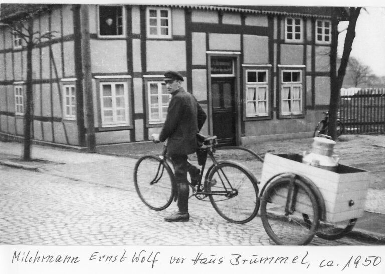 Milchmann Ernst Wolf vor dem Haus Brummel